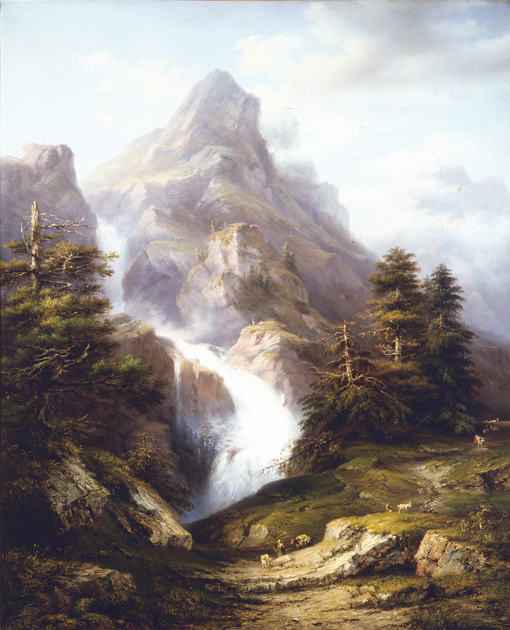 Le Alpi Orobie sono state frequentate a più riprese dai pittori che ne hanno percorso i sentieri, raggiunto le cime, osservato gli aspetti naturali, con l’intenzione di documentarne la bellezza e di condividerla attraverso le loro realizzazioni. A partire dal 1884, con la nomina di Cesare Tallone alla Direzione della Scuola di Pittura dell’Accademia Carrara, un’aria di rinnovamento si diffonde tra le giovani generazioni di artisti. Il maestro Tallone spinge i suoi studenti a dipingere dal vero, organizzando anche delle uscite all’aria aperta; lo scenario delle Orobie – le vette, le cascate, i pascoli, i paesi, le persone – diventa uno dei soggetti prediletti della scuola pittorica bergamasca. Negli olii di alcuni tra i migliori allievi della Scuola di Pittura come Costantino Rosa (1803-1878), Andrea Marenzi (1823-1891) ed Ermenegildo Agazzi (1866-1945) sono descritte con minuzia le bellezze e le particolarità della Val Taleggio, la Valle Brembana, la Val Seriana, le Cascate del Serio e tutta la spettacolarità della cima Presolana.
