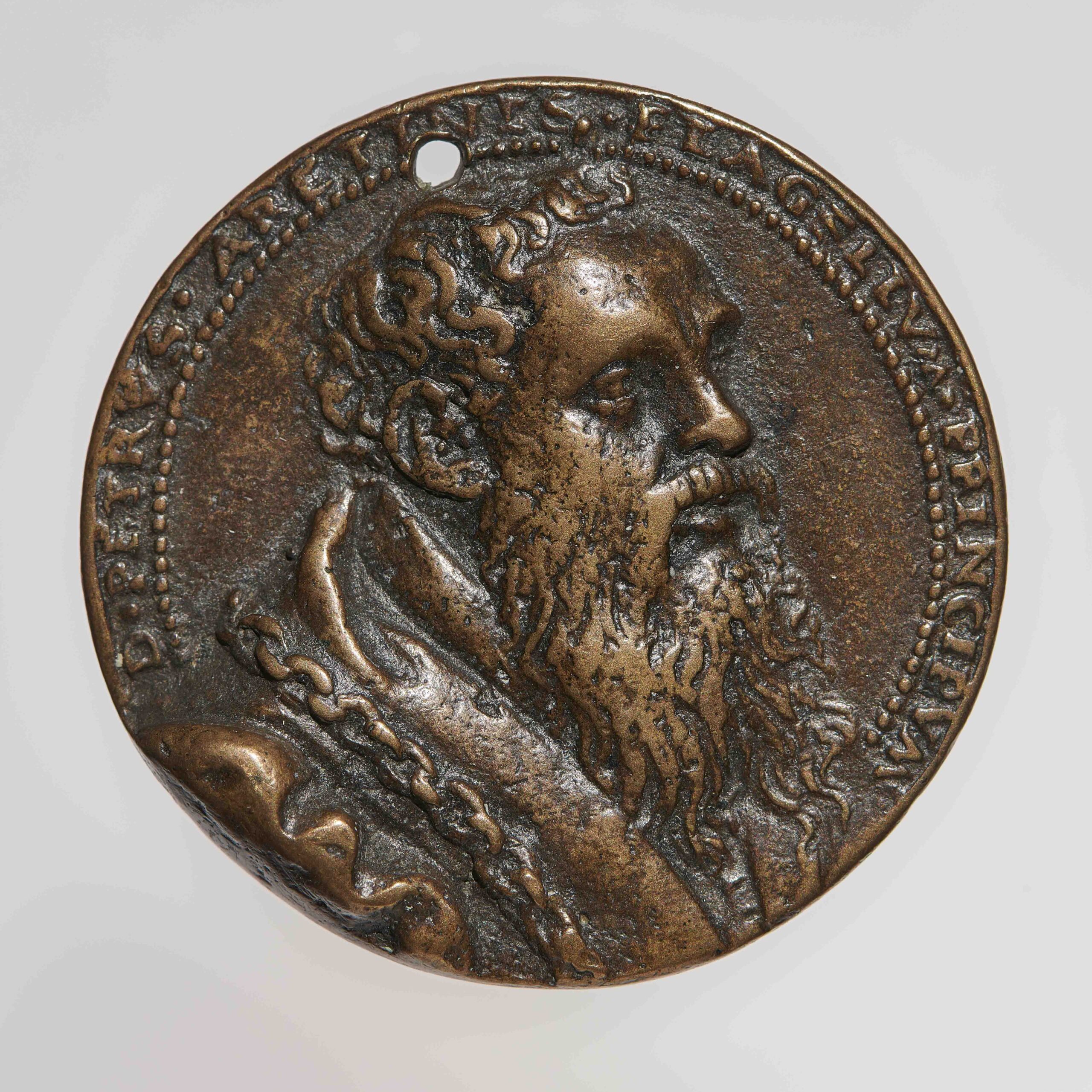 La mostra si propone di evocare questa vicenda accostando alla tela eseguita da Tiziano altre celebri testimonianze dell’iconografia aretiniana come una serie di celebri medaglie di diversi artisti, che scandiscono tutto il corso della sua carriera e testimoniano quanto la ritrattistica sia intrinseca alla riflessione di Aretino sull’arte. A completare il percorso, due volumi a stampa particolarmente significativi, all’interno della sterminata produzione dello scrittore, che richiamano due vicende tra le più note della vita di Aretino: i Sonetti lussuriosi, scritti nel 1525, dopo aver visto le invenzioni di Giulio Romano incise da Marcantonio Raimondi, conosciuti soltanto attraverso un unico esemplare a stampa successivo; l’allestimento della commedia La Talanta scritta da Aretino a Venezia e messa in scena con la collaborazione di Giorgio Vasari durante il Carnevale del 1542.